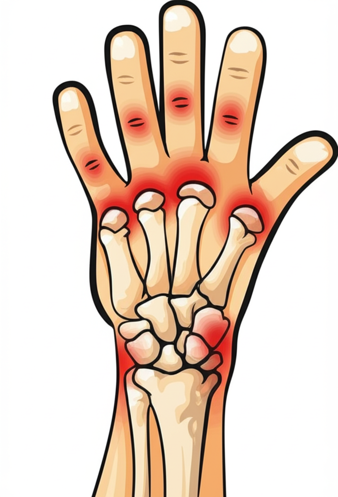 • Kemerahan dan Hangat: Kulit di sekitar sendi yang meradang bisa terasa hangat saat disentuh dan tampak kemerahan.
