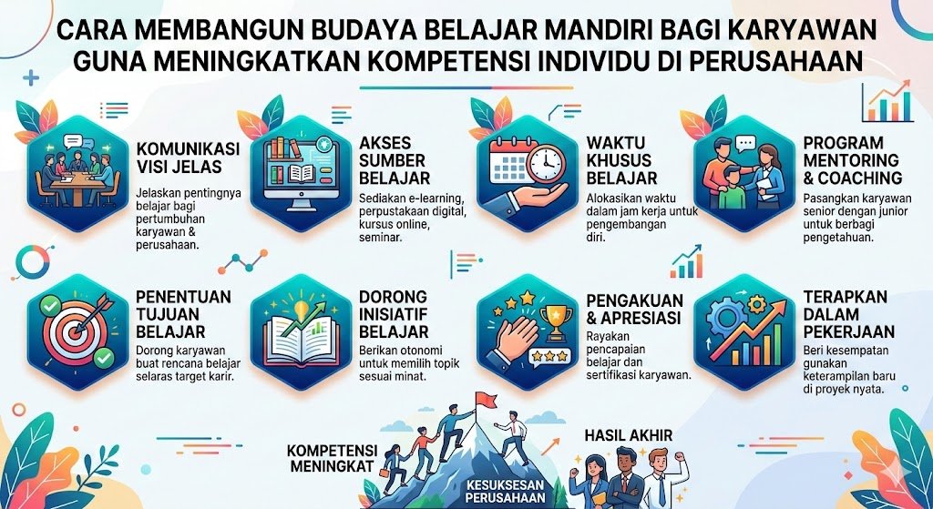 Membangun budaya belajar mandiri adalah strategi jangka panjang yang membutuhkan konsistensi dan dukungan sistemik. Dengan mengombinasikan perubahan pola pikir, penyediaan sumber daya yang tepat, alokasi waktu yang jelas, keteladanan pemimpin, dan ruang untuk berbagi, perusahaan dapat menciptakan angkatan kerja yang tangguh. Kompetensi individu yang terus meningkat secara otomatis akan mendongkrak performa organisasi secara keseluruhan, menjadikan perusahaan lebih lincah dalam bermanuver di tengah perubahan zaman yang tak terelakkan.