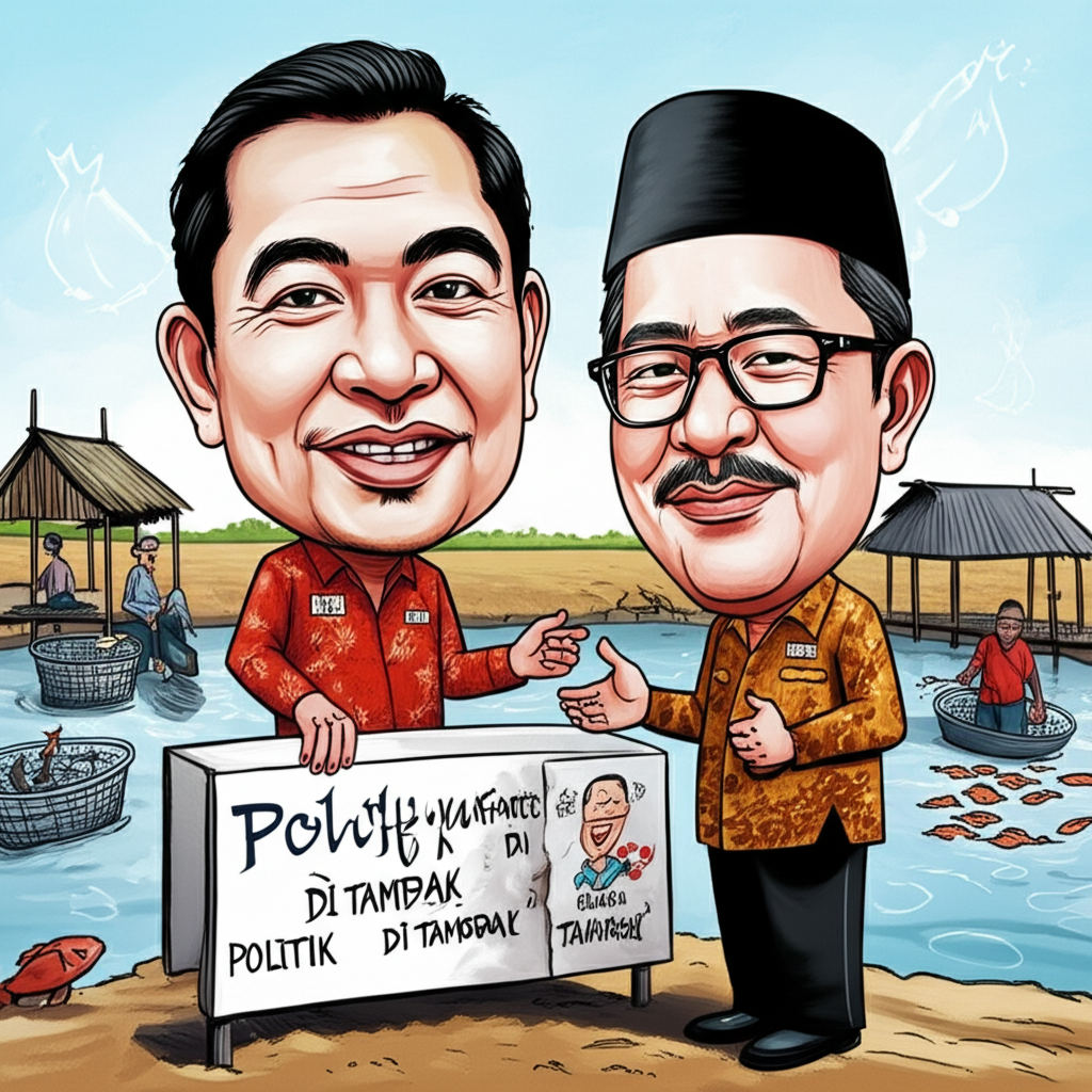 Bayangkan senja yang memerah di atas permukaan air payau yang tenang, memantulkan siluet jajaran pohon bakau di kejauhan. Aroma khas udang dan bandeng yang baru dipanen menguar bersama angin laut. Di tengah pemandangan itu, di atas sebuah jukung sederhana yang melaju perlahan membelah petak-petak tambak, seorang calon legislatif (caleg) atau kepala daerah duduk bersila, berhadapan langsung dengan para petambak.