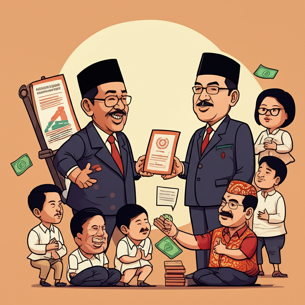 Jaringan Kekuasaan Vertikal dan Horizontal: Klientelisme tidak hanya terjadi antara politisi dan pemilih. Ia juga merambah ke dalam birokrasi, antar-partai, dan bahkan antar-kelompok kepentingan. Seorang pejabat mungkin memberikan proyek kepada pengusaha yang loyal, yang kemudian akan "membalas" dengan sumbangan kampanye atau dukungan politik. Partai-partai berkoalisi bukan semata karena kesamaan ideologi, tapi juga karena adanya "jatah" kursi menteri atau proyek-proyek tertentu.