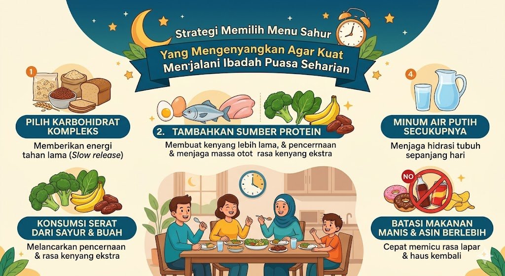 Menjaga kondisi tubuh agar tetap prima selama menjalankan ibadah puasa sangat bergantung pada kualitas asupan saat sahur. Sahur bukan sekadar aktivitas makan di dini hari, melainkan kunci utama untuk menyimpan cadangan energi yang akan digunakan selama belasan jam ke depan. Dengan pemilihan menu yang tepat, rasa lapar dan lemas dapat diminimalisir sehingga produktivitas harian tetap terjaga dengan maksimal.
