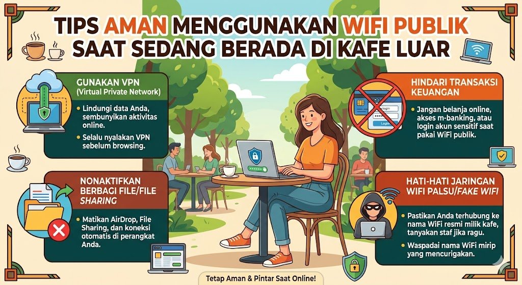 Menggunakan koneksi internet gratis di kafe memang sangat memudahkan untuk bekerja atau sekadar berselancar di media sosial. Namun, di balik kenyamanan tersebut, terdapat risiko keamanan siber yang cukup tinggi karena jaringan publik sering kali tidak terenkripsi dengan baik. Para peretas dapat dengan mudah mengintai aktivitas daring Anda jika tidak melakukan proteksi tambahan pada perangkat yang digunakan. Oleh karena itu, penting bagi setiap pengguna untuk memahami langkah-langkah preventif agar data pribadi tetap terlindungi selama terhubung dengan jaringan di tempat umum.